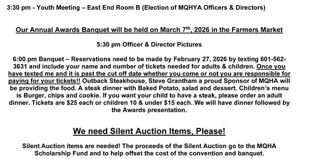 Important Reminder: To be eligible for MQHA points for year-end awards, an exhibitor must be an MQHA member at the time the points are earned. Please make sure your membership is current!