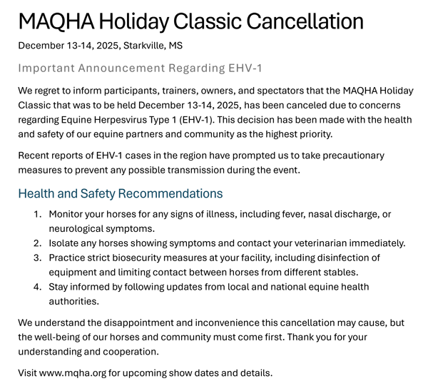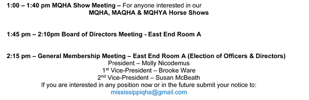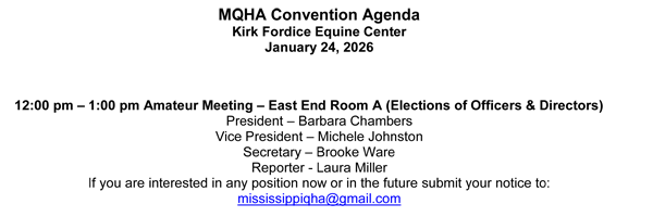 Important Reminder: To be eligible for MQHA points for year-end awards, an exhibitor must be an MQHA member at the time the points are earned. Please make sure your membership is current!